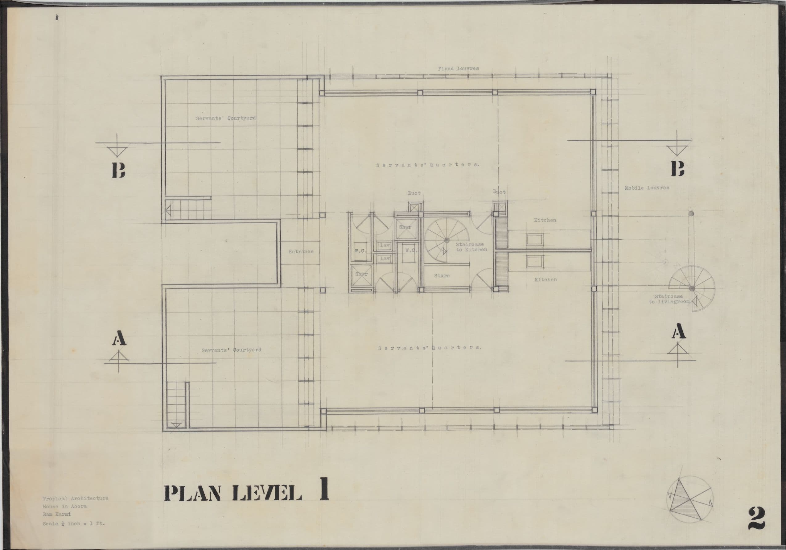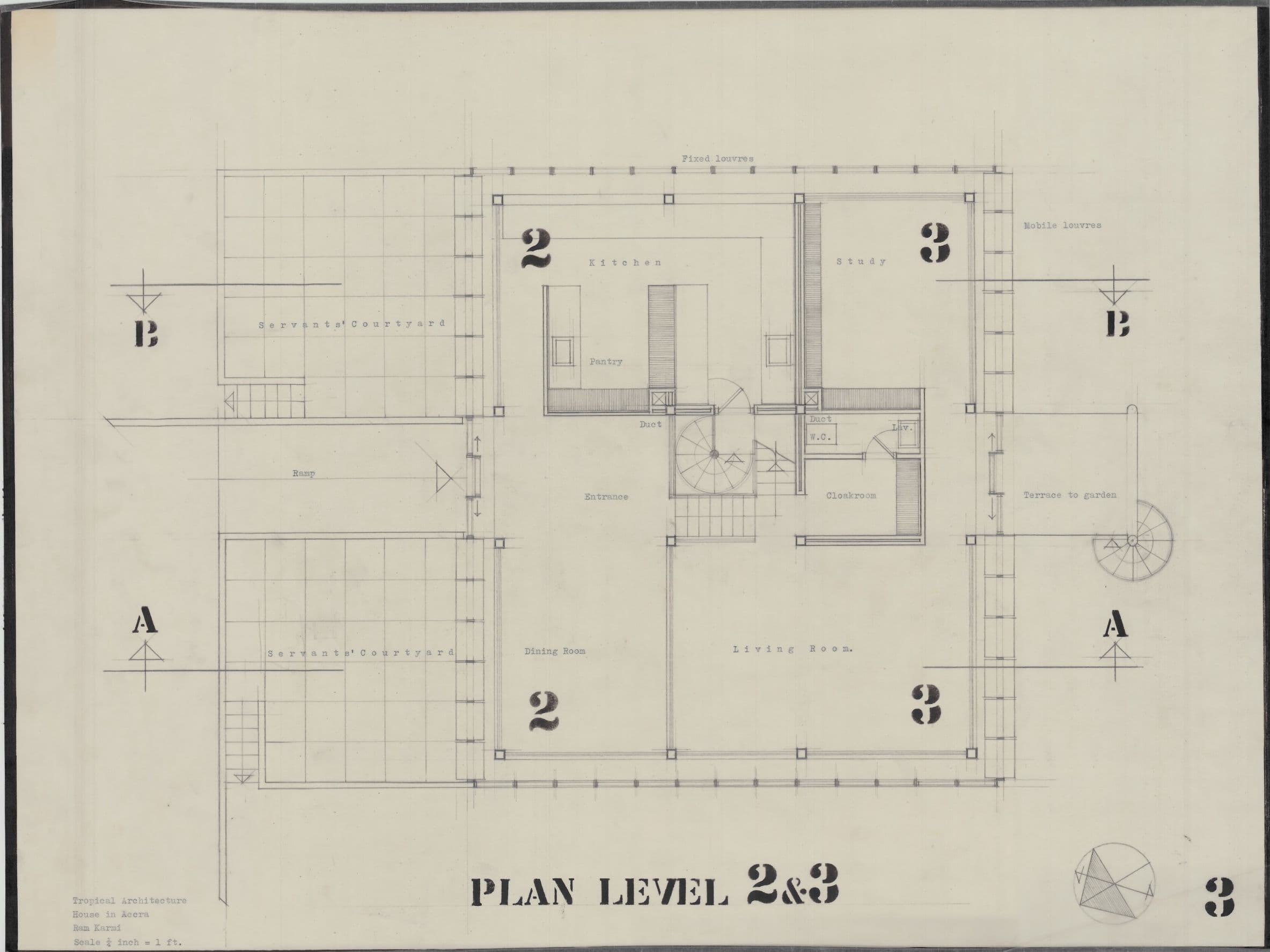 Ram Karmi, 'House in Accra', AA Department of Tropical Architecture, 1954-55. Site plan.. AA Archives