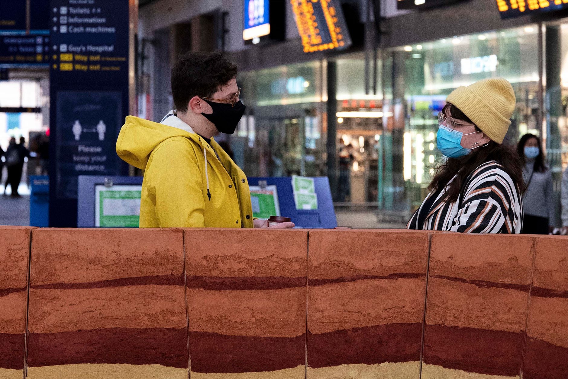 Local Collective used London clay – a natural material found beneath Londoners’ feet – to offer breathable and sustainable seating in the station. The bench’s modular system offers different arrangements for different social needs, while the materiality of clay improves indoor air quality by absorbing humidity and toxins.