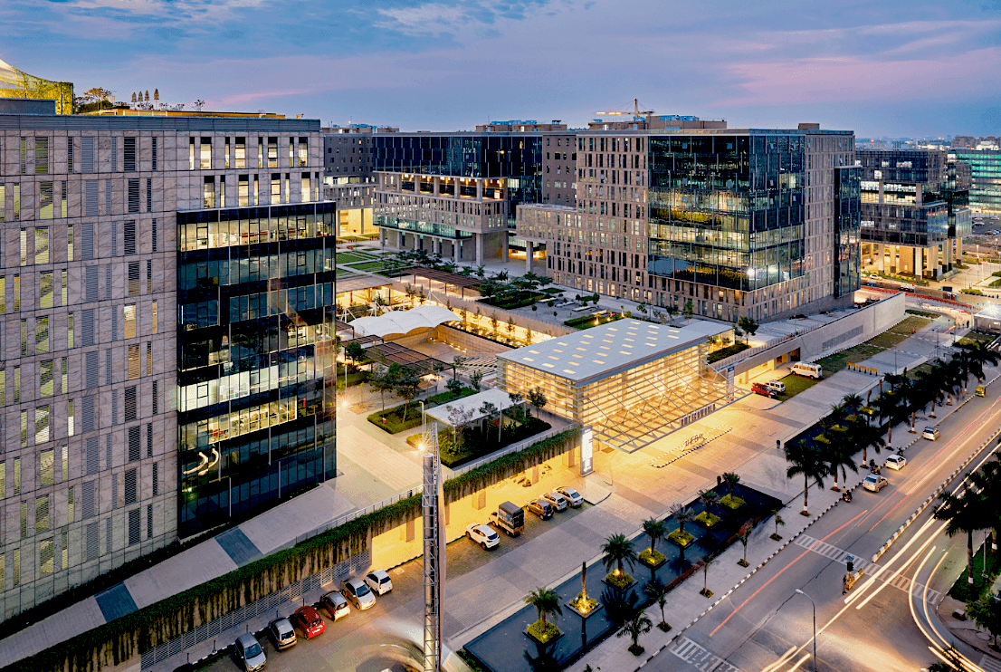 Image: Commercial office for RMZ Ecoworld, Bengaluru, India, on which Nanukuttan worked while at DP Architects in Singapore.