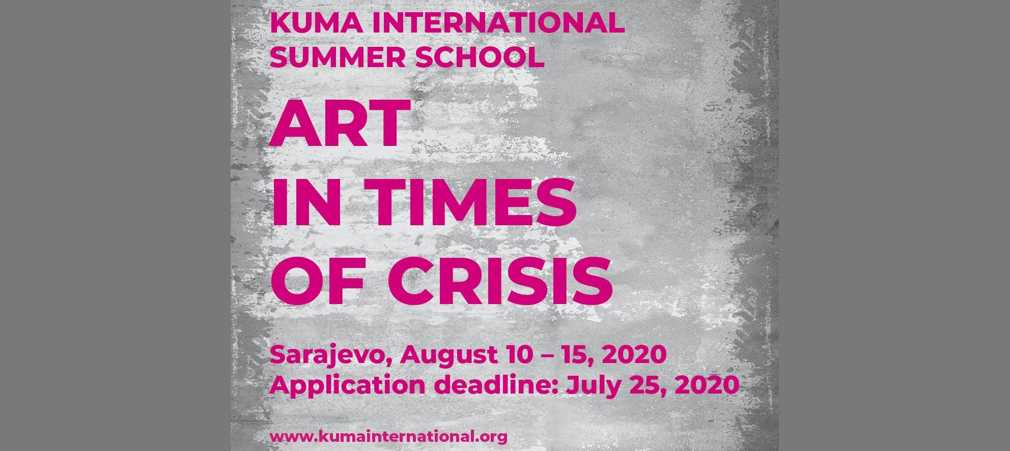 History and Theory tutor Nerma Cridge has been invited to lecture at the KUMA international Summer School, based in Sarajevo, on the fitting subject of ‘Art in Times of Crisis’. Her two lectures will take place on Friday 11 August and Sunday 13 August, both addressing art during the pandemic, titled ‘Tape Line as the Pandemic Element’ and ‘Public Sculpture Matters’ respectively.