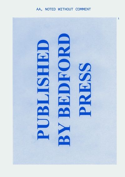 AA, Noted Without Comment is a mosaic of fragments collected from the Architectural Assocation Print Studio with contributions by Madelon Vriesendorp, Ryan Gander, Ghost Dance Times, Brett Steele, Street Farmer, Cristiano Toraldo di Francia, Rem Koolhaas and Rene Daalder, A.R.C., Jan Turnovsky and David Greene. Originally published within The National Grid #5.